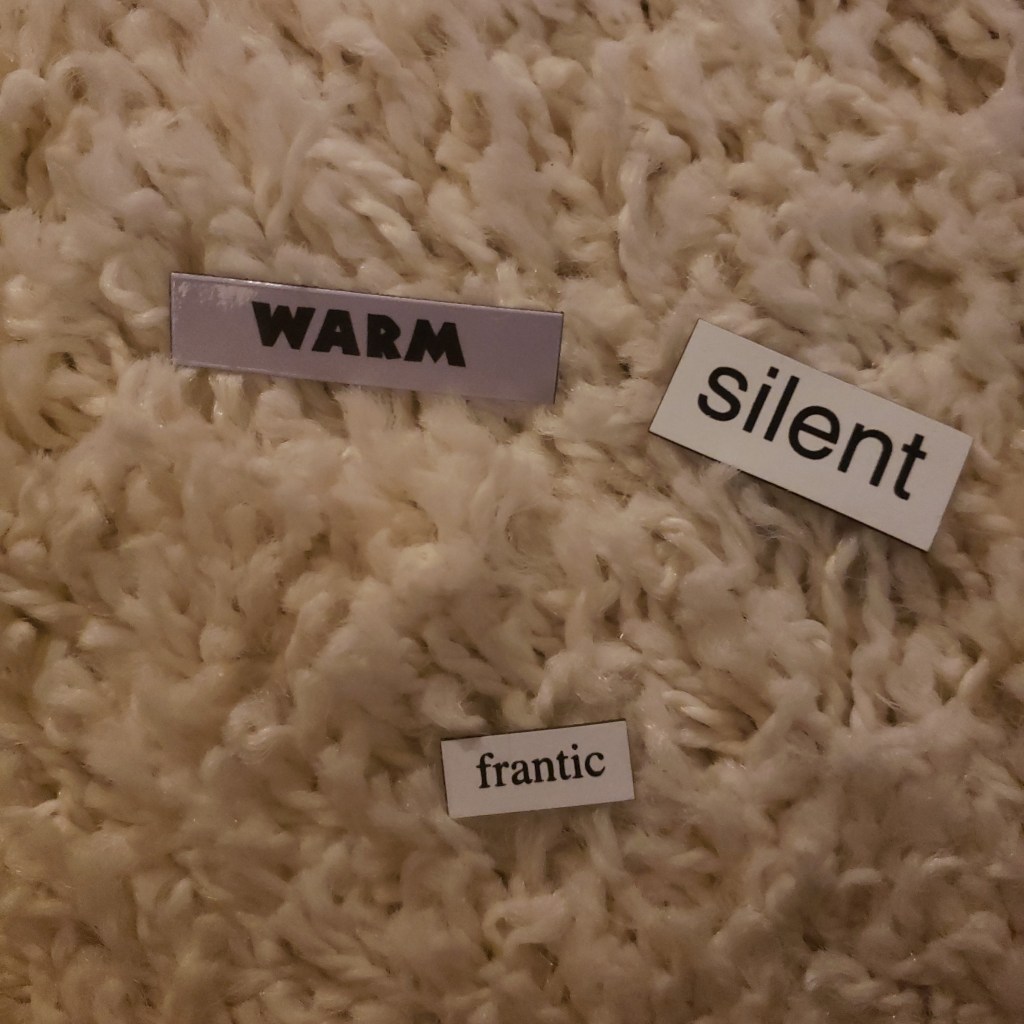 So, I build in late night poetry, and basically a ways back on Tumblr this lady ruminated on how the deepest thing she ever wrote was with word magnets; also werewolves were involved. Here’s a link to it, and from the moment its lycanthrope entanglement nestled dank-ly between my brain lobes I deeply, secretly yearned that one day I too would write the profoundest thing I’ve ever written with word magnets.